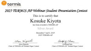 「The 2025 TERMIS-AP Conference 」がオンラインにて、2025年12月5日 (金)~ 12月6日 (土)の会期で行われ、本研究科修士1年生の清田幸佑くんがStudent Presentation において口頭発表でSilver Awardを受賞しました。